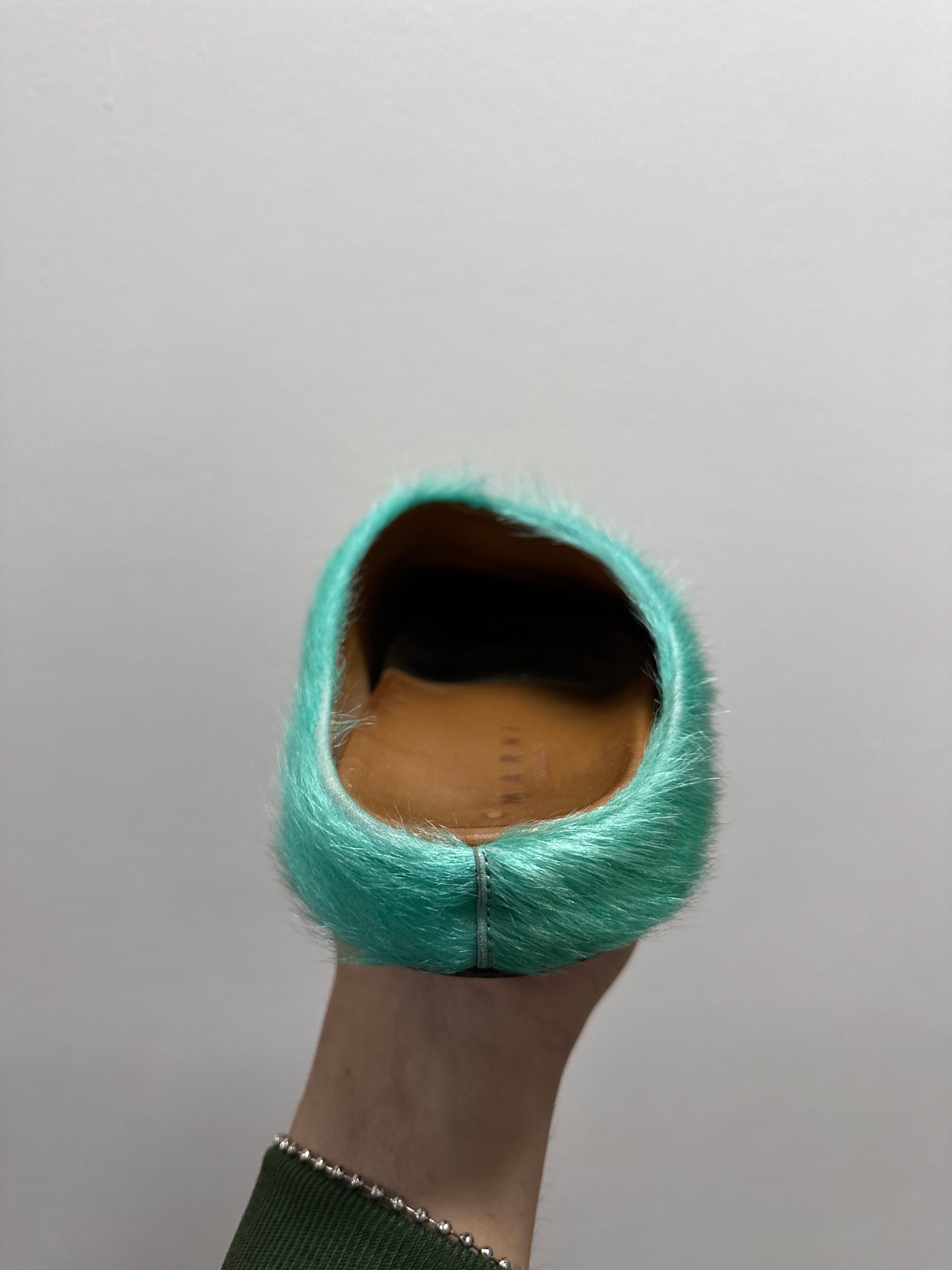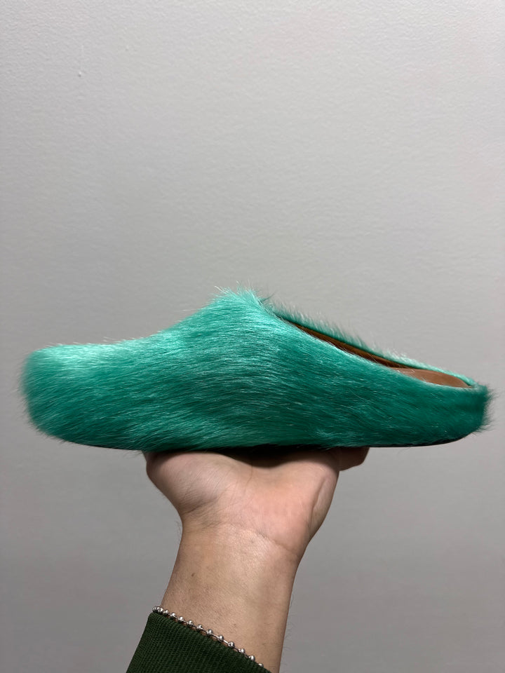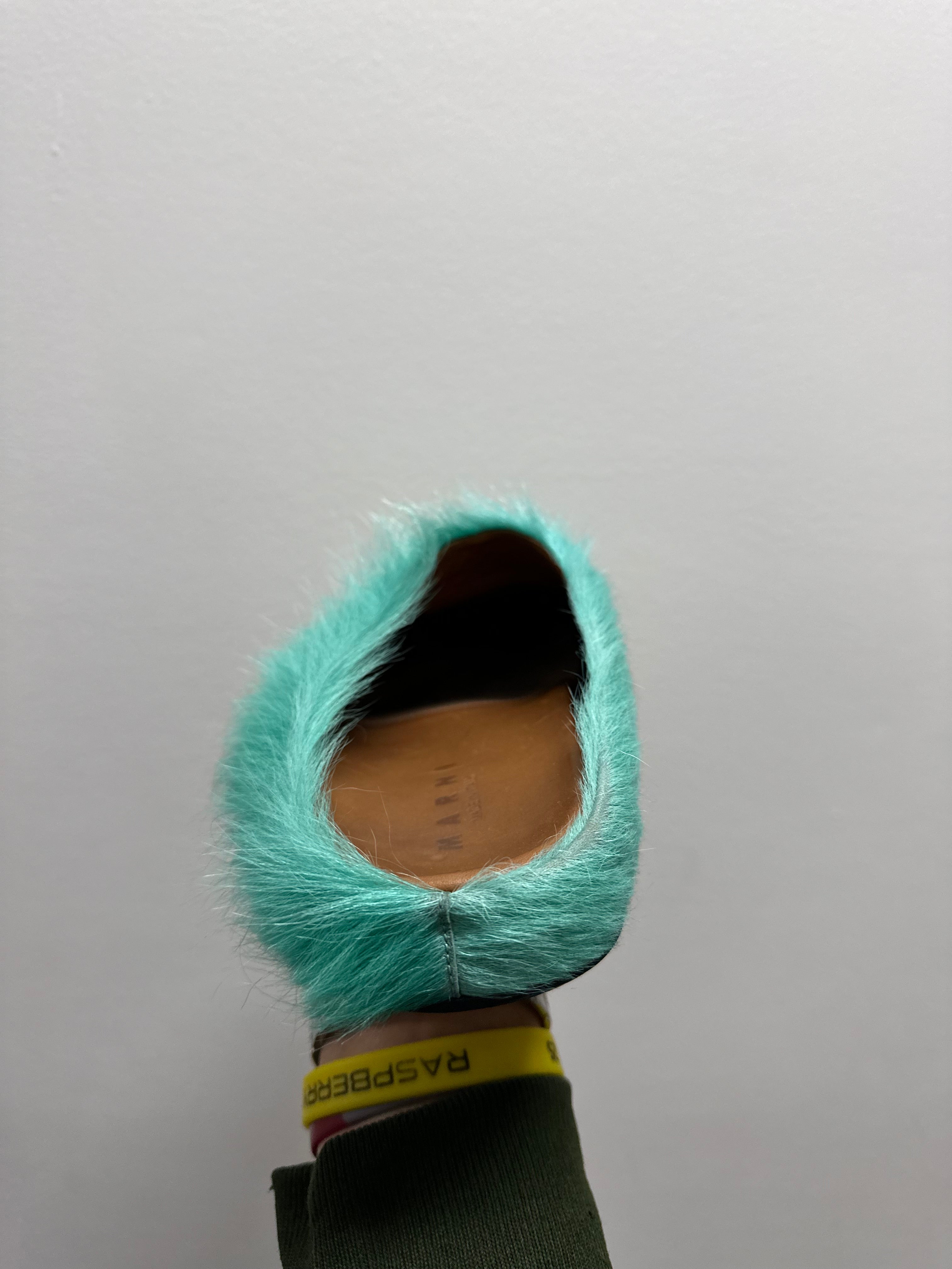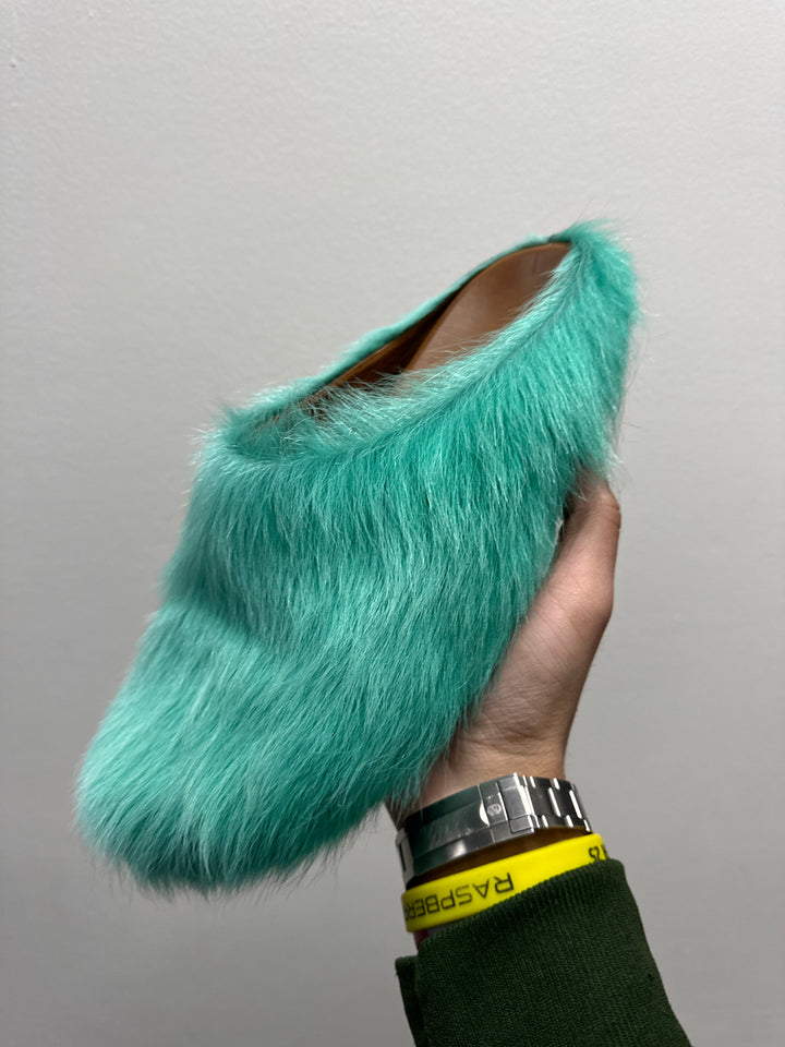 Marni Fussbet Calf Hair Turqoise Sabot Clogs