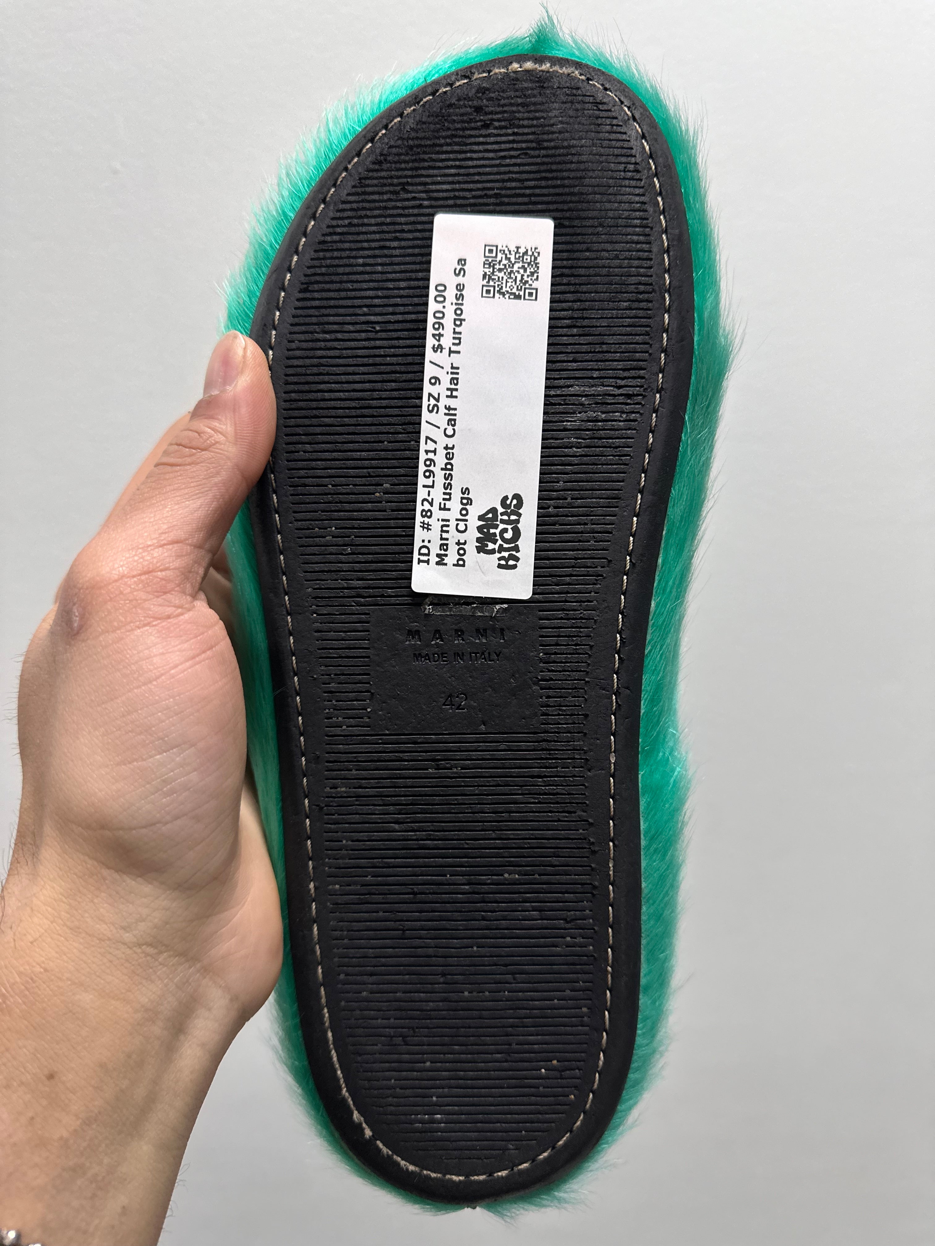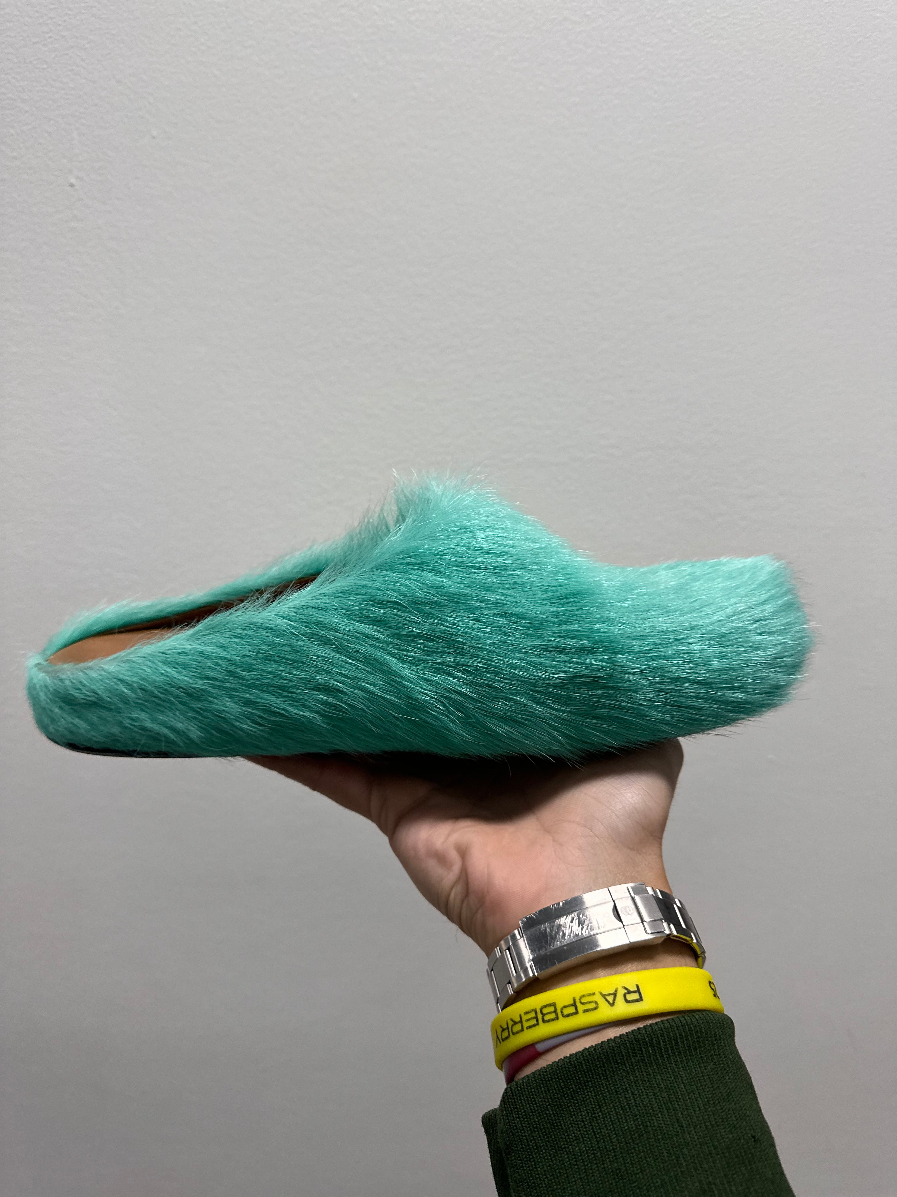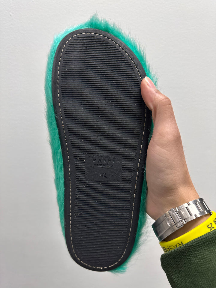 Marni Fussbet Calf Hair Turqoise Sabot Clogs